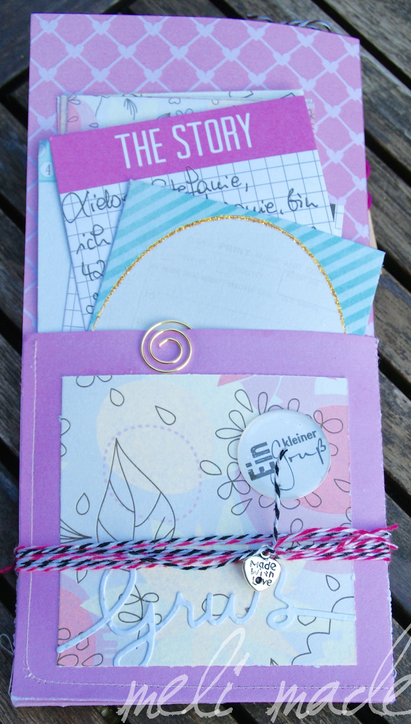DIE EMPFÄNGERIN MAG ICH ECHT GERNE ÜBERRASCHEN, DAHER HOFFE ICH DOCH SEHR, AUCH IHREN GESCHMACK GETROFFEN ZU HABEN. ICH HABE MEINEN POCKET LETTER GEFÜLLT MIT EINIGEN CHARMS JEWEILS IN BRONZE UND SILBER, SOWIE FILZBLUMEN, TEE, NUTELLA, KNÖPFEN. BÄNDERN, GLITZER, EINEM SPIEGELBUTTON, GLITZER UND ZUBEHÖR FÜR DAS FOLGENDE ALBUM: